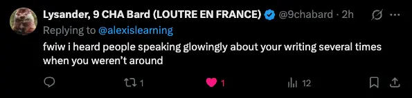 So this gave me the idea of reaching out to friends asking for little writeups on what they like about me, to make my non-work-related strengths more legible too.