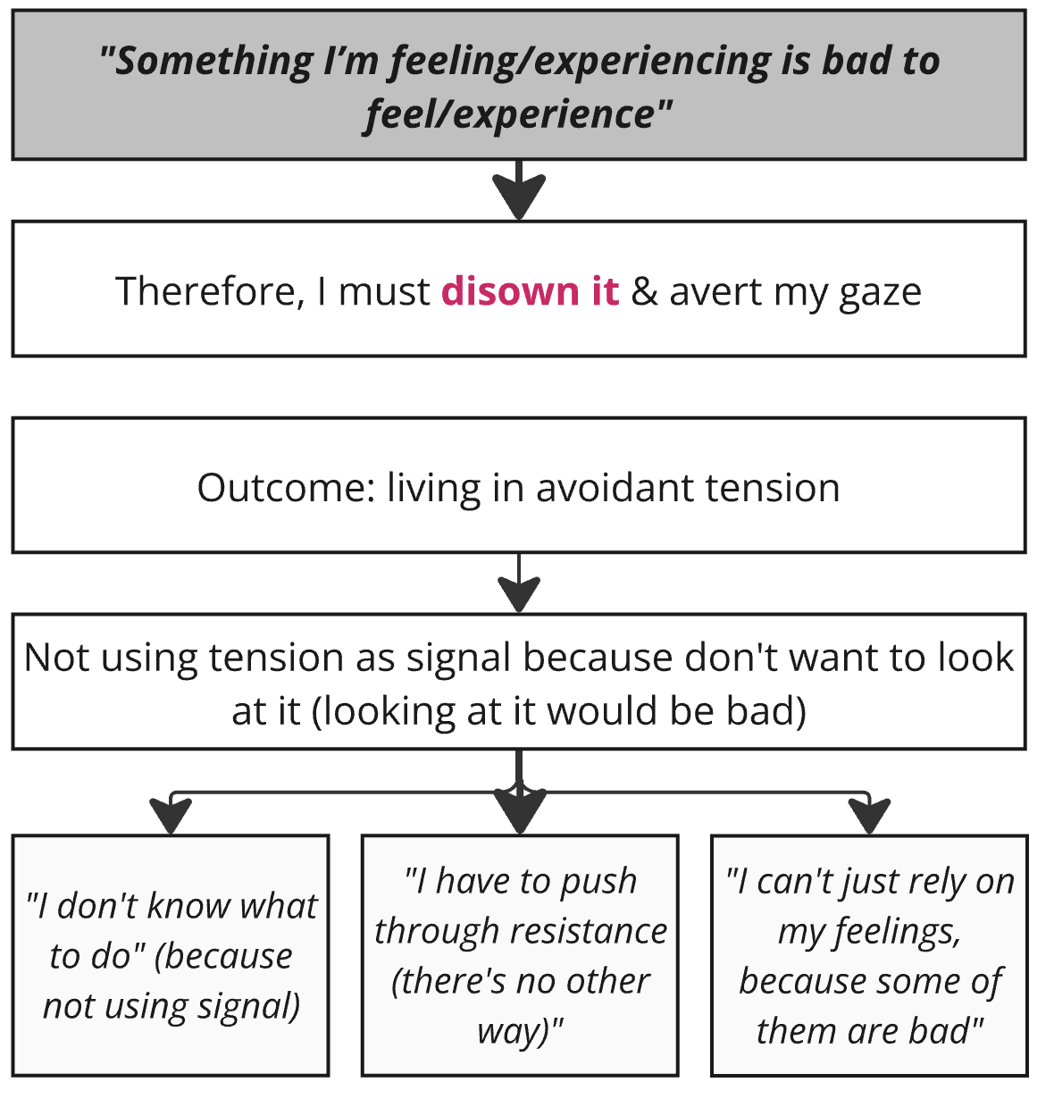 Therefore “I must disown some feelings, not look at them, push them away”