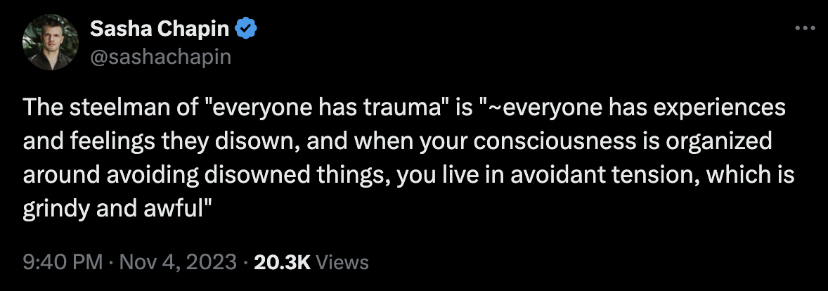 - It could be argued as being the same as a lack of secure attachment. “Ahh, this is bad, must push it away”, rather than feeling okay with what arises