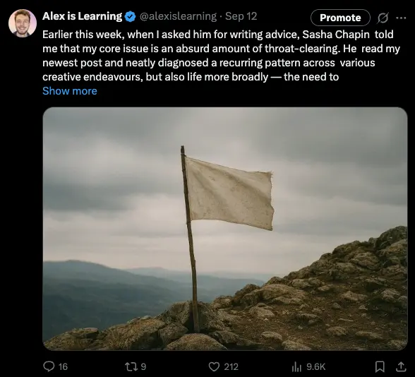 • Similarly, it’s clear that Sasha Chapin is publishing things that he has polished for a while, and also they’re based on ideas that he has chewed on for a while. Deeper wisdom rather than surface-level insights innit
