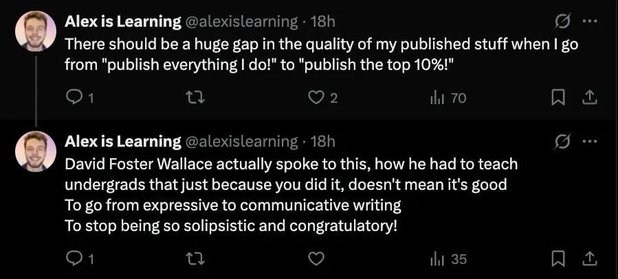 Actually no, that’s not quite it, more like “it feels good to hit publish on stuff even if it’s kinda shitty or first draft, just because it feels so great to finally be making stuff”
