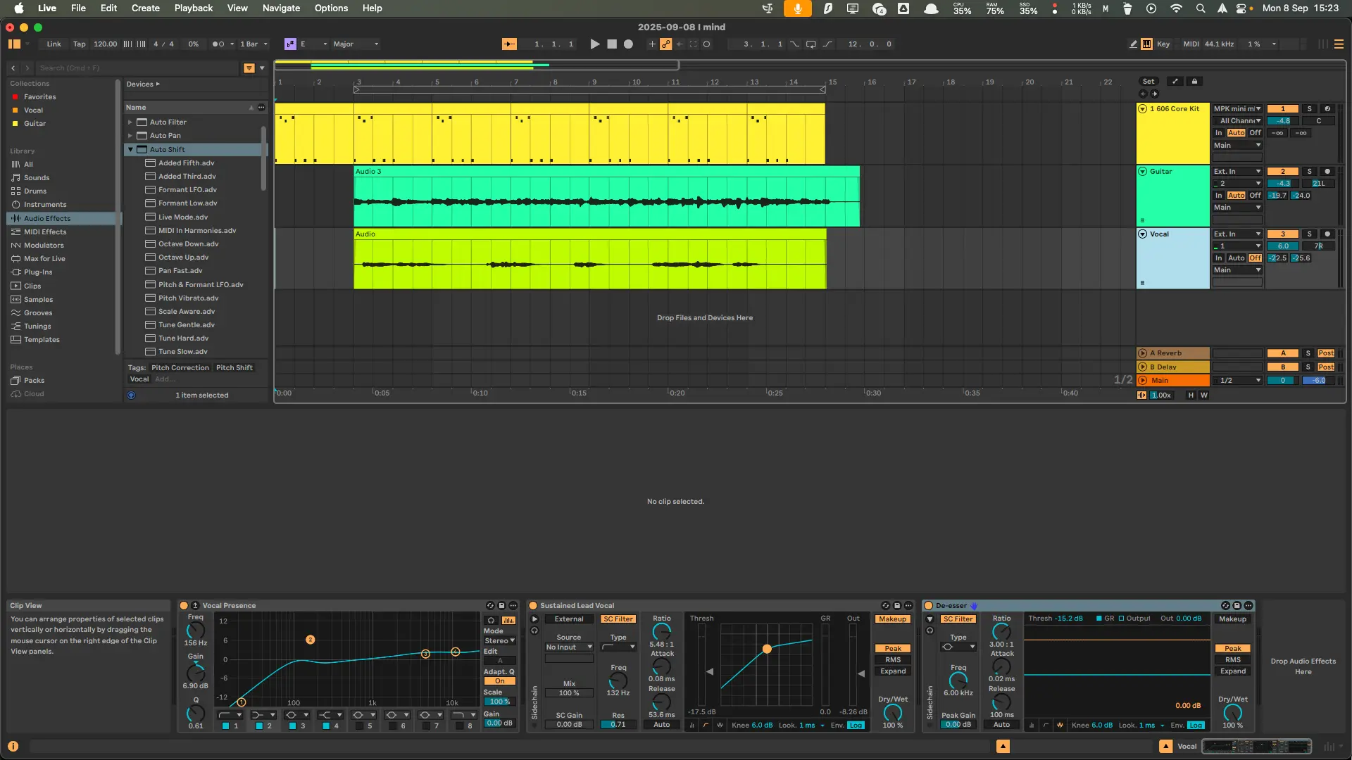 As my macbook broke, I don’t have any of my plugins and saved effect chains, which is kind of a bummer, but also kind of nice to start fresh and minimalist
