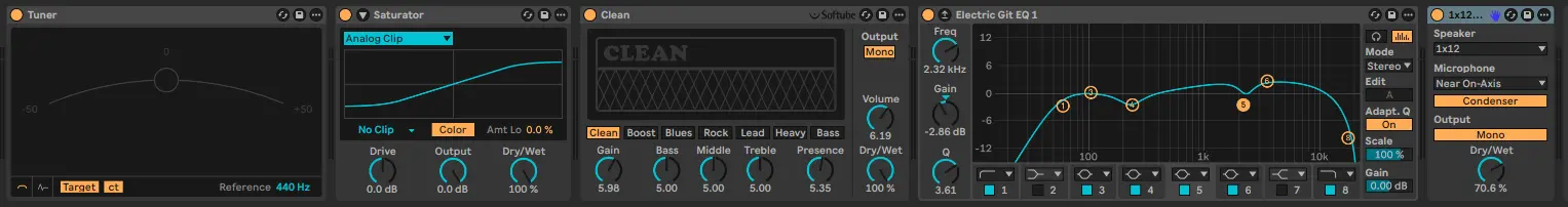 Now I have Ableton Suite (overkill, I should probably have just been a GarageBand boy until my production skills improved enough), I’ve got the built-in Ableton amps & cabinets