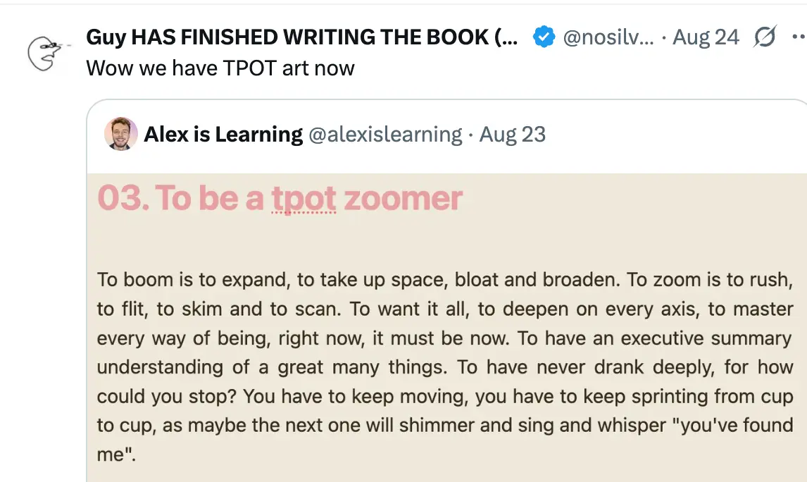 - āI havenāt really written anything like idk prose-y as an adultā ā 01. To be a boomer, 02. Donāt be overwhelmed!, 03. To be a tpot zoomer etc