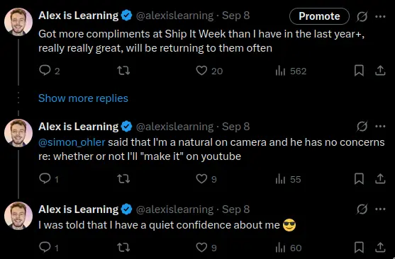 - š after he read my vignettes and the substack posts I wrote whilst at Ship It Week