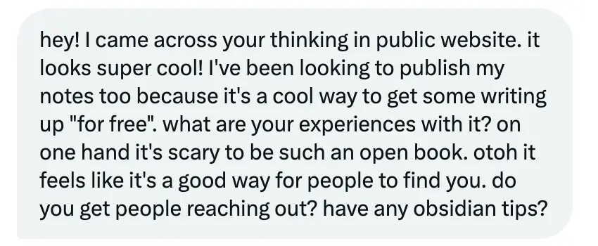 So this gave me the idea of reaching out to friends asking for little writeups on what they like about me, to make my non-work-related strengths more legible too.