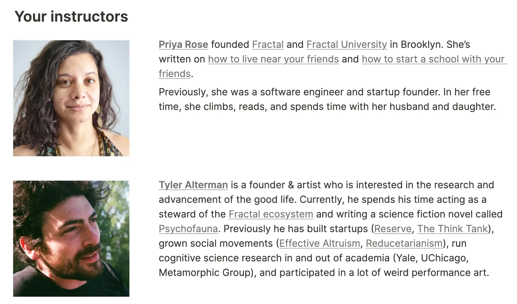 - A thing to note is that this is almost certainly by far the best way to start a Fractal. Rather than âSimmo is in Egypt and Alex is in Oxford and we make a website and do some tweetsâ, itâs an accelerator with Tyler Alterman and Priya.Â