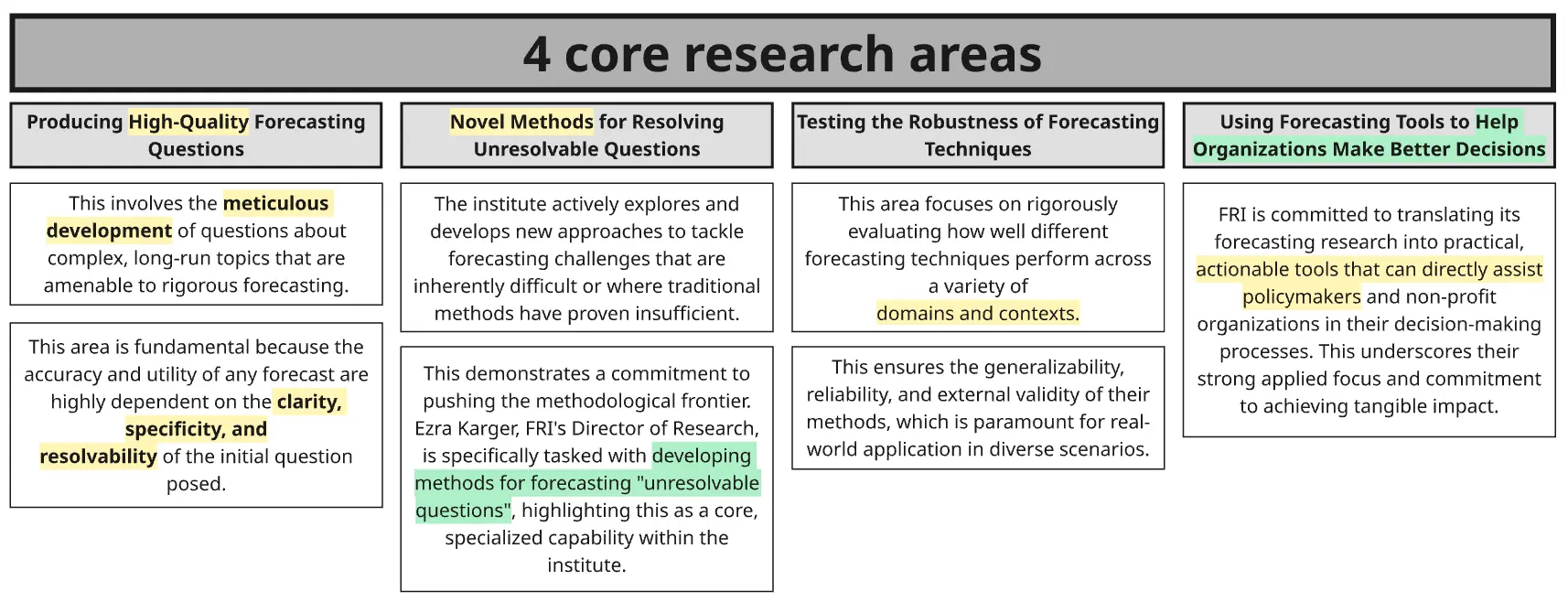 - Expanding the scope of what can be forecasted - figuring out how to break down intractable/impossible questions
