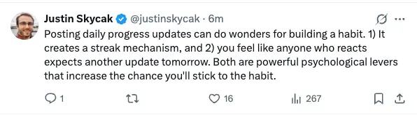 2025-08-06 just saw this (6 minute old, lol) tweet → so true! I really like having e.g. Meditation log and Log per day - 2026 ☝️ https://x.com/justinskycak/status/1953078615043915980