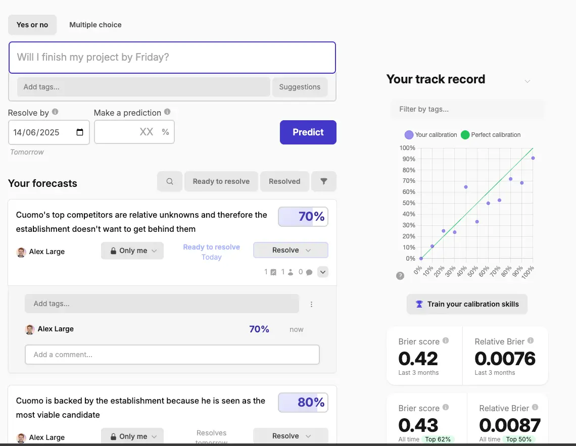 - Put them in Fatebook so that I could cash them out as YES or NO