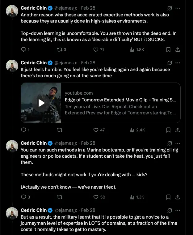 - Pretty much “make predictions, grapple with reality, make a model, face the fact that your model is terrible, get your ego involved, cash out the predictions and see what you got wrong”