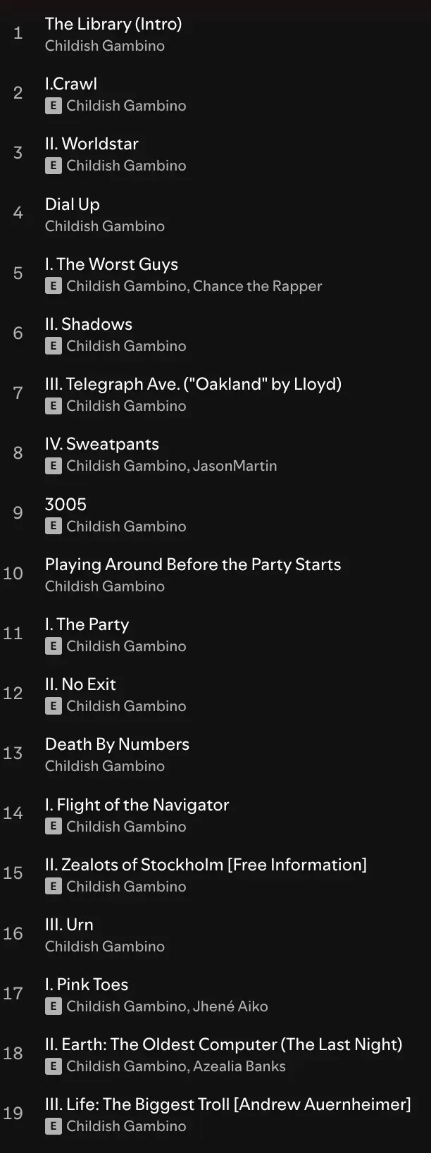At this point I definitely felt distanced from Gambino, it felt clear that he’s like… not a guy, he’s a character, or something, idk.