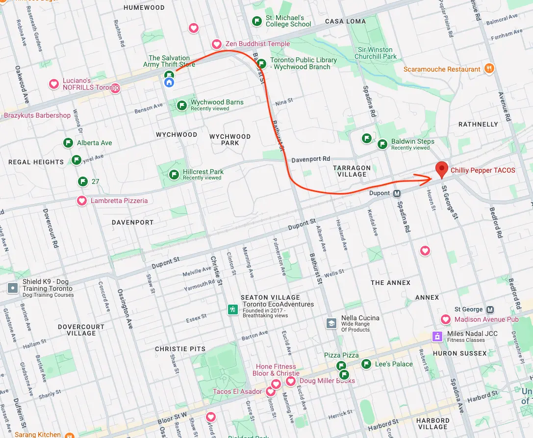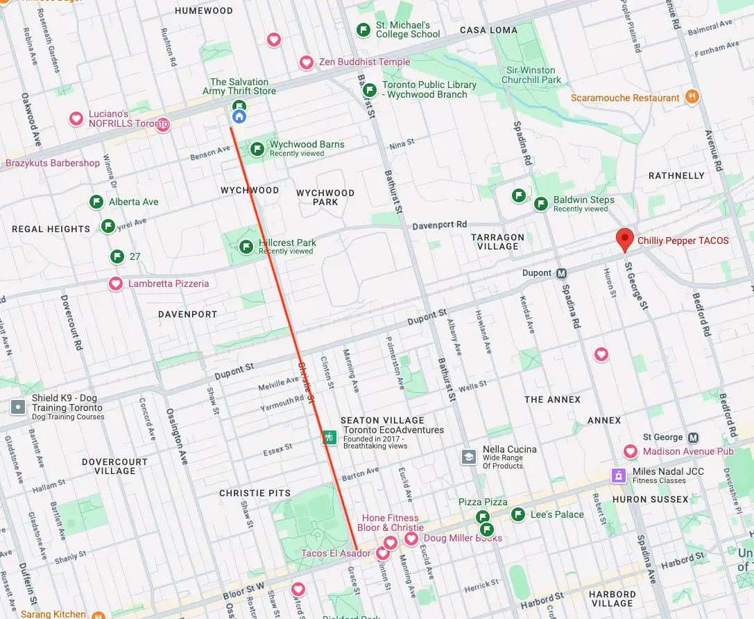 In this final ~2 month time in Toronto I lived in this little zone: