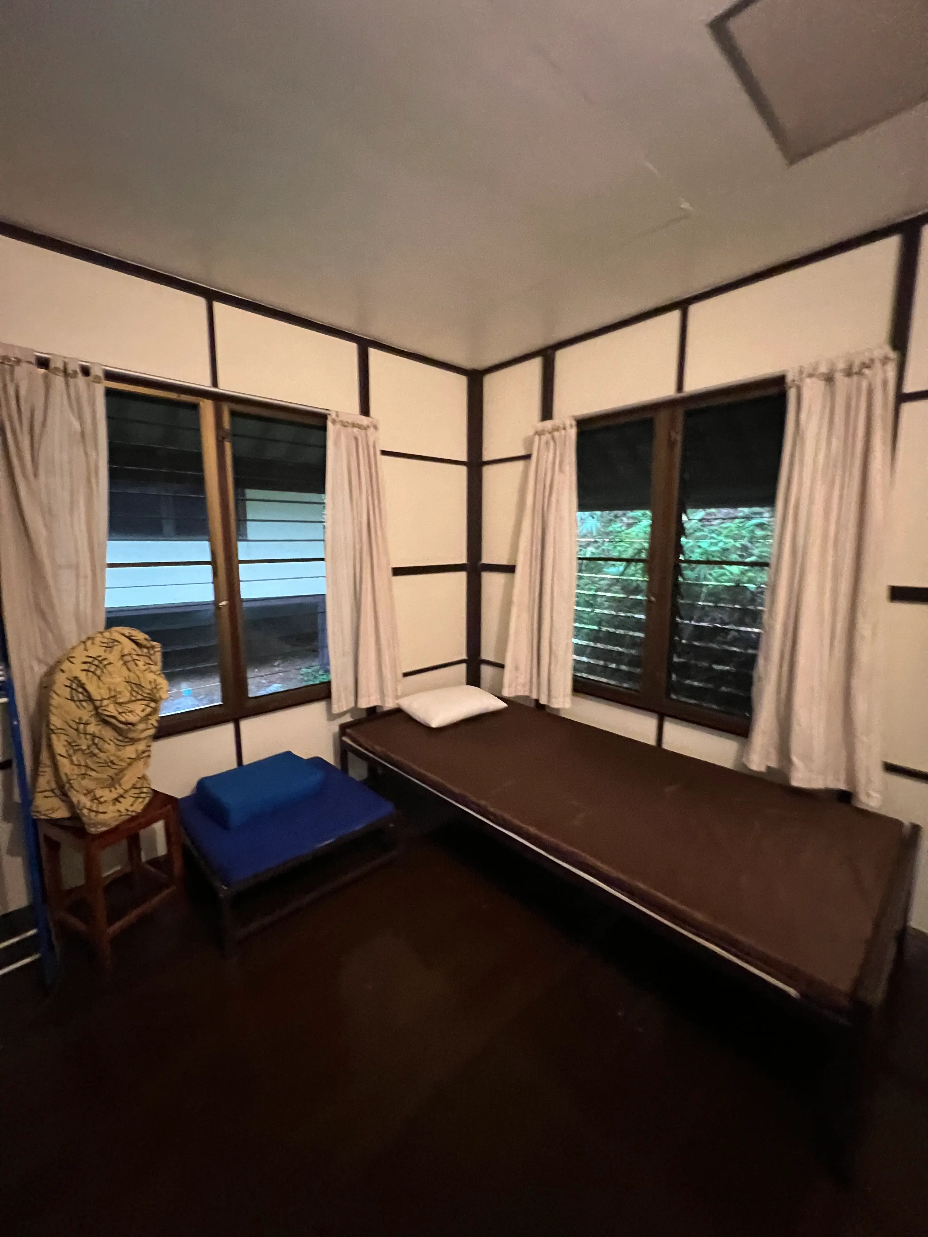 This was my bedroom. No devices, woken up my a bell in the morning. I had an ant problem for a while (literally hundreds in my bathroom), killed a fair amount of them (totally breaking a precept) before realising that it’s much more effective to live and let live (they weren’t biters or anything)