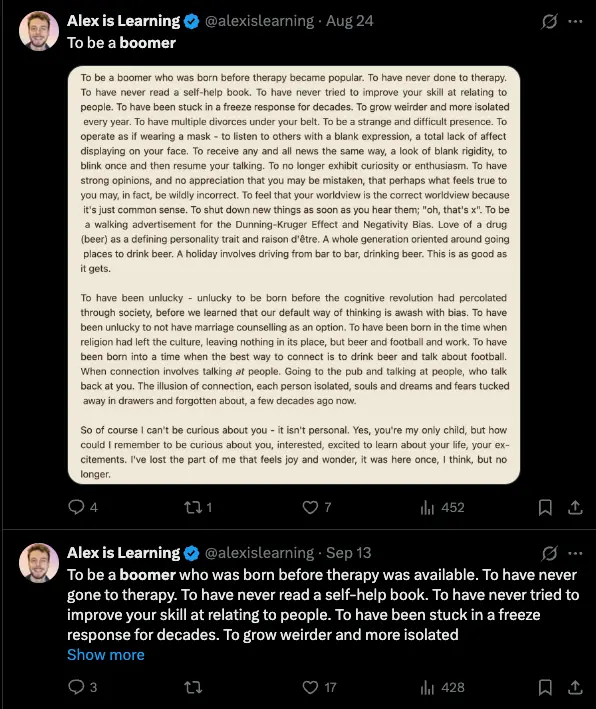- My median tweet gets 9 likes (as per Should I intentionally tweet better? 2025-10-24)