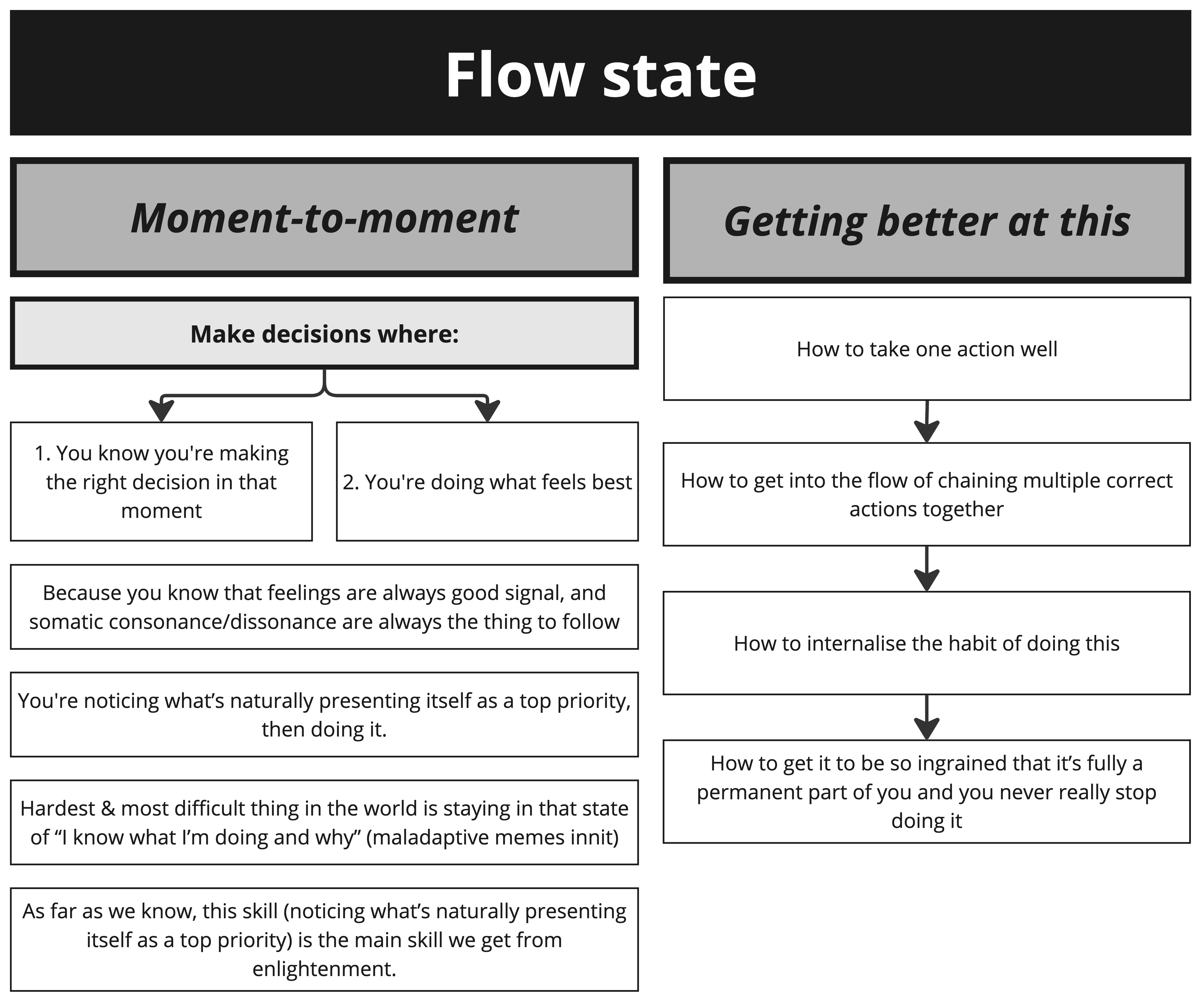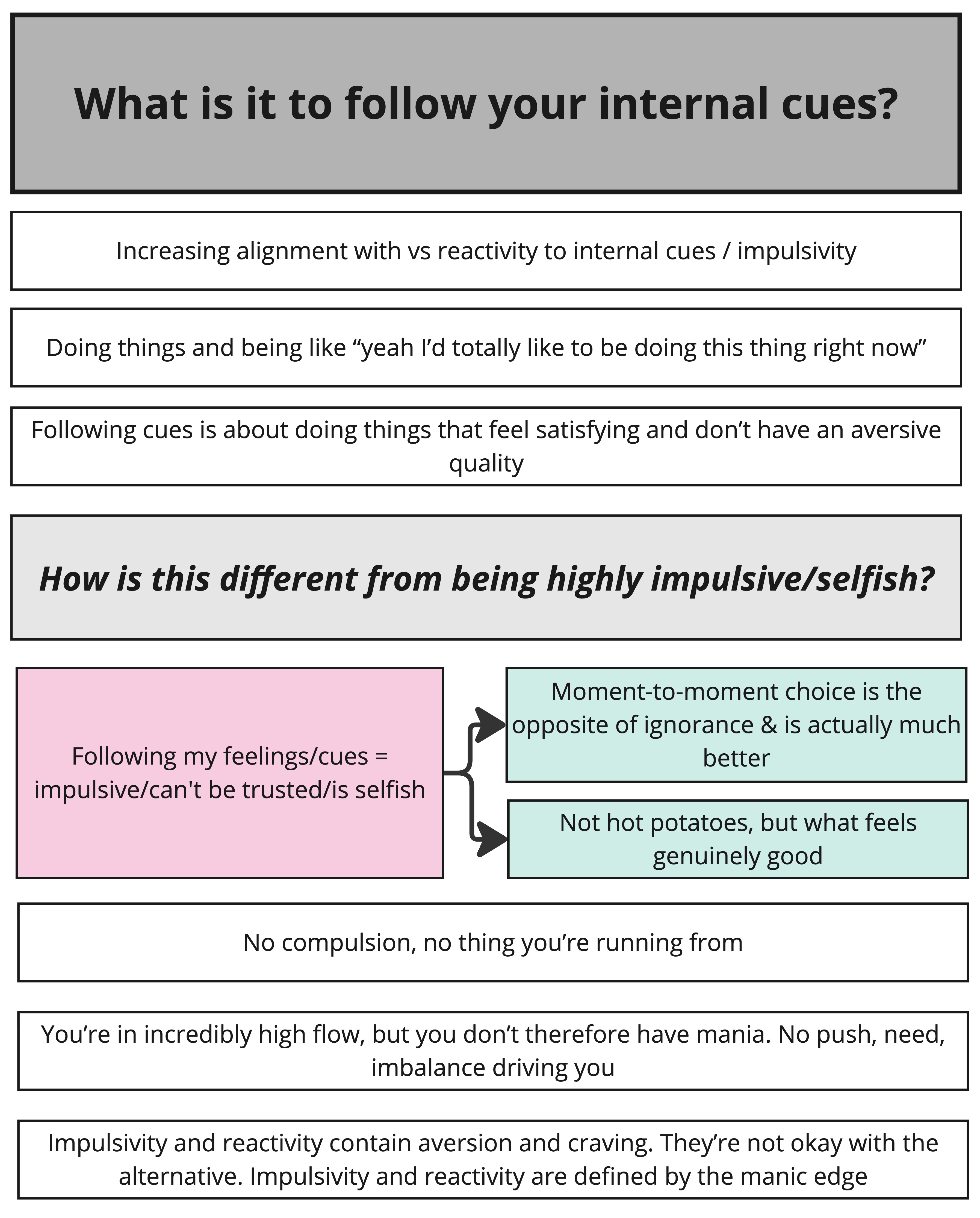 • Doing the things which satisfy all the current internal cues results in feeling really satisfied, clear-headed; as happy as we can feel