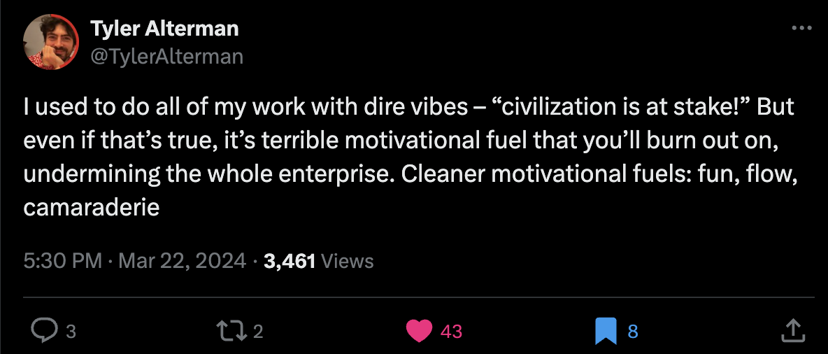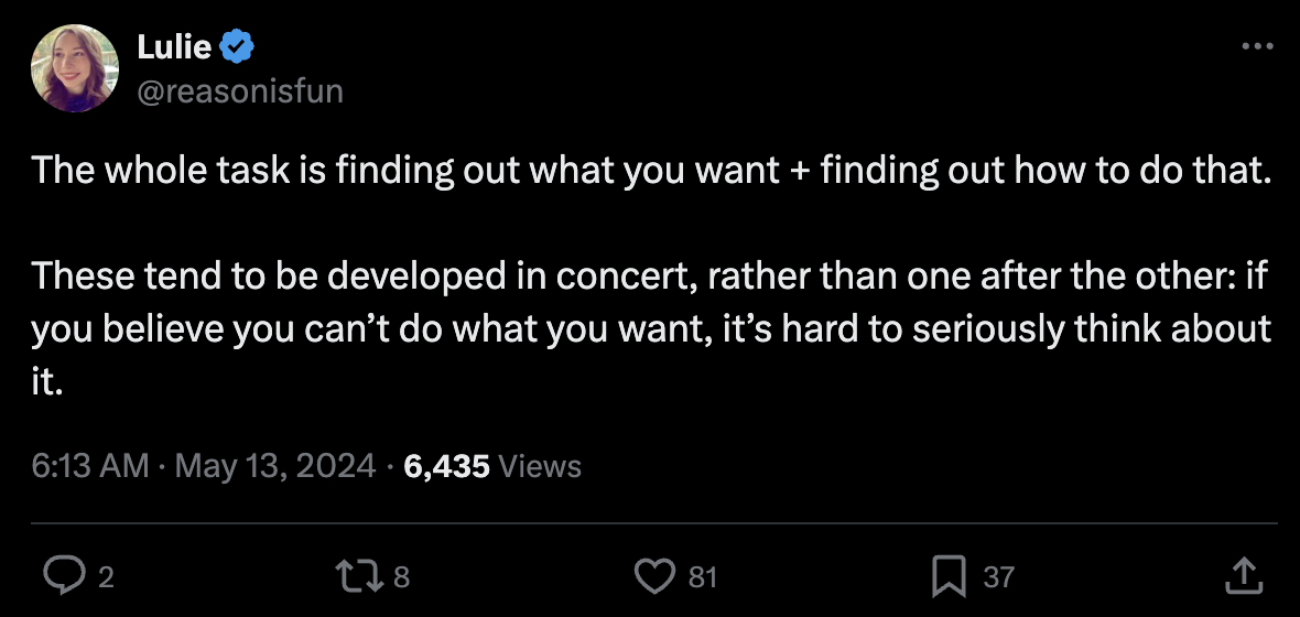 At times, I am astoundingly productive. During the most productive year of my life, I wrote a book, while being a full-time freelance copywriter, and traveling the world and studying chess, while still having a fair amount of free time, somehow. But when I am most productive and happy, my days look nothing like what I’ve heard a productive person’s do. Meanwhile, when I’m trying to be a productive person, like, trying to assume the normal trappings of productivity, I don’t get anything done.