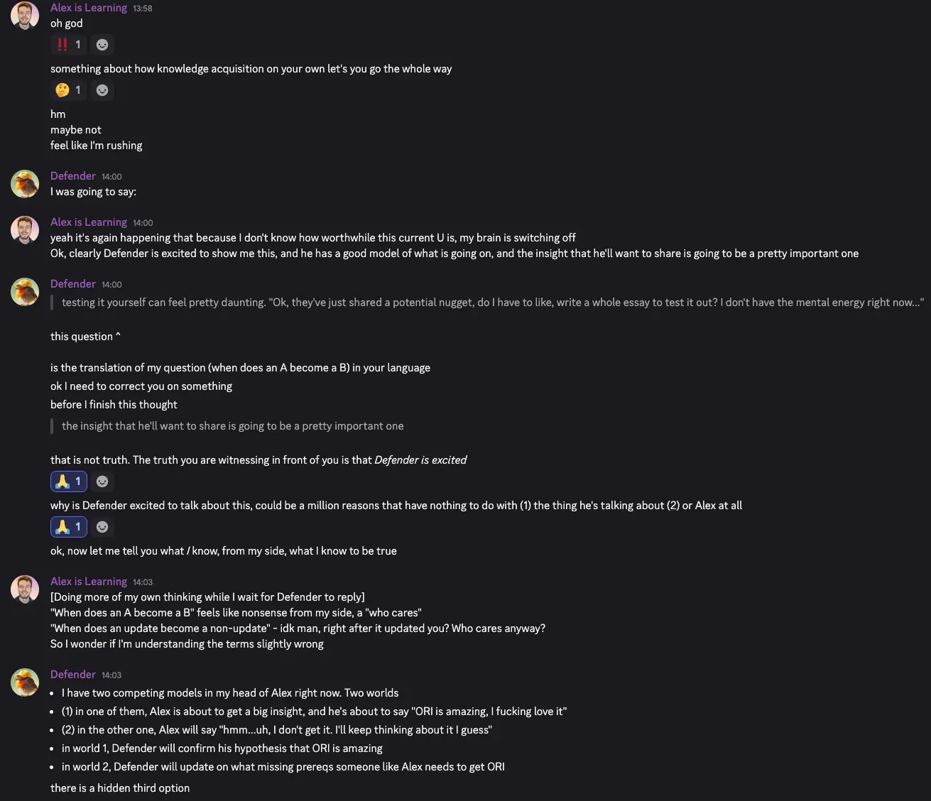 - And I think that realising this is a watershed moment for me, re: ORI. I’m taking the Wisdom of a Very Established Thinker and saying “uh dude, no, that looks wrong?”