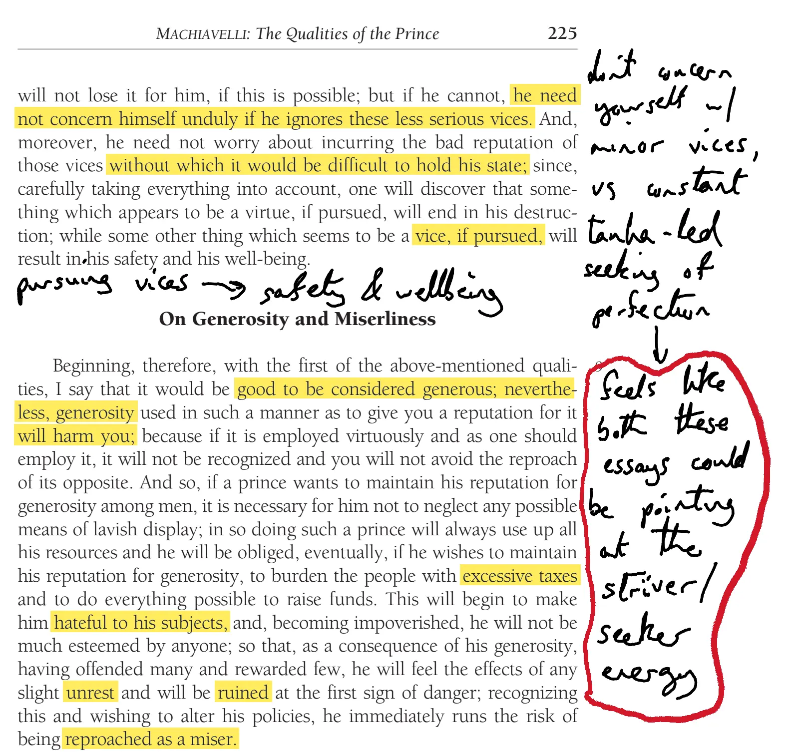 - One essay prompt that I imagined and felt very alive, whilst I was reading, is something about the striver/seeker/tanha energy that he recognised in me, and how Lao Tzu and Machiavelli think about this, point at this