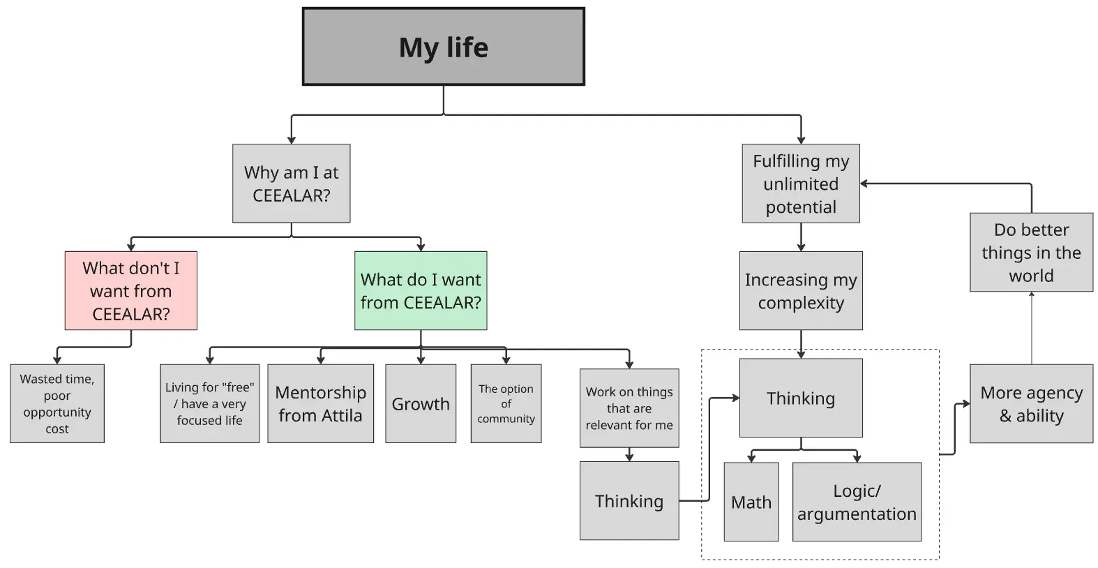 - Perhaps there’s a much more boundaried version of working at CEEALAR where I’m much more clear about the role I want, the kind of work I want to do. Only work that is relevant to my path, that is, maybe only thinking-work. Only stuff that involves improving our thinking. Knowledge management, red-teaming, etc