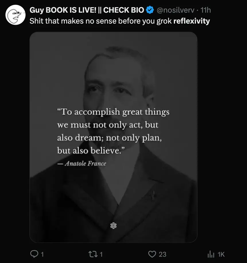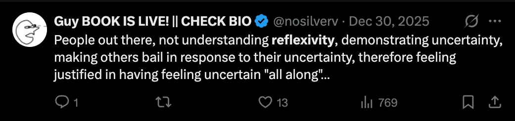 - I got this term from Nosilverv’s substack post “Reflexivity — Part 1” (it’s not his term but he tweets about it a bunch)