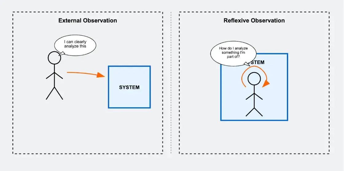 - Literally exactly the thing of “you’re not outside the system looking in, you’re embedded in it!!” (this is also very Heideggerian now I think about it)